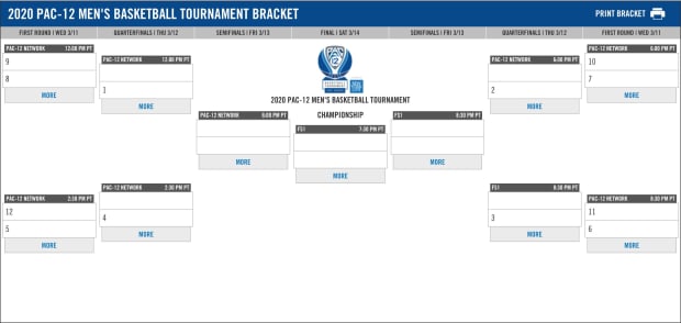 View the full bracket, seeds and schedule for the 2020 PAC-12 men’s basketball conference tournament
